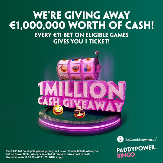 Paddy Power Bingo Sponsored · Come off it! A mill? No chance! We’ve gone and broken up a sweet 1 MILLION into loads of smaller cash prizes. So you’ve got more chance of winning one – to spend on whatever you like! 🎉 18+ | T&Cs Apply | Please Gamble Responsibly