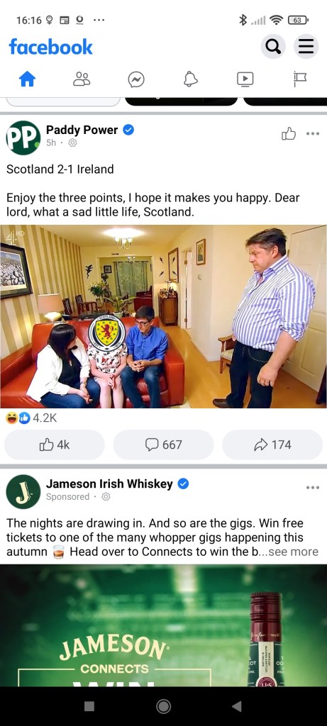 Posted on September 25, 2022September 25, 2022 by Padraic Guilfoyle“What a sad little life Scotland” Paddy Power #gamblingad Share this: Click to share on Facebook (Opens in new window) Facebook Click to share on X (Opens in new window) X Like Loading... Related