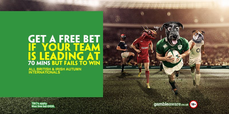 Rugby Autumn Internationals offer! Back a team to win & if they lead on 70 mins and DON’T win, you get a free bet! http://pdy.pr/vourwg